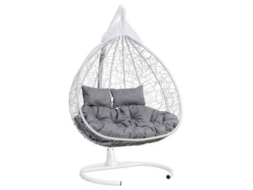 Кресло подвесное двойное Феникс, корзина белая, подушка серая CN25023