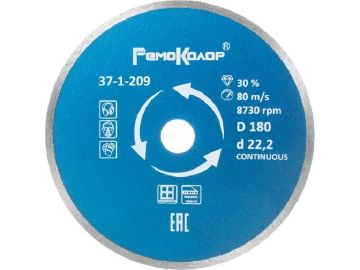 Диск отрезной алмазный Professional сплошной для влажной резки, 180х22,2 мм РемоКолор