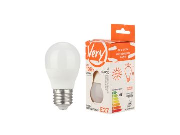 Лампа светодиодная шар GL45, 10Вт, 4000К, E27 VERY