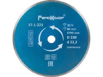 Диск отрезной алмазный Professional сплошной для влажной резки, 230х22,2 мм РемоКолор