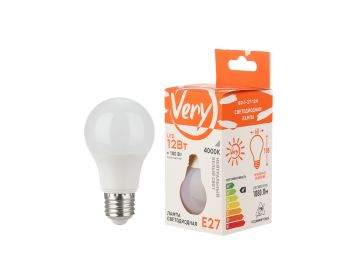 Лампа светодиодная груша A60, 12Вт, 4000К, E27 VERY