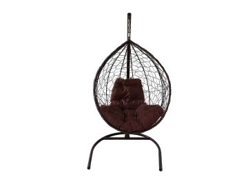Кресло подвесное Капля с ротангом, каркас коричневый