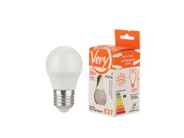 Лампа светодиодная шар GL45, 8Вт, 4000К, E27 VERY