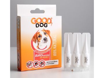 БИО капли GOOD DOG для щенков и собак от блох и клещей, 3 х 2мл 2855879