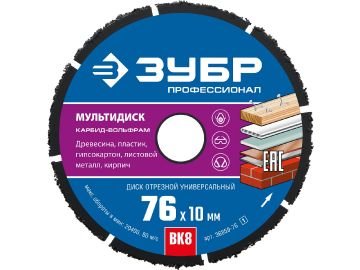 Диск отрезной (с твердосплавным зерном), ЗУБР Мультидиск, 76 х 10 мм, для УШМ