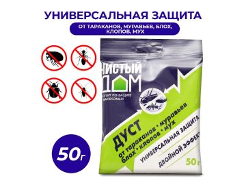 Дуст инсектицидный от тараканов, блох, клопов, муравьев Чистый дом 50 г