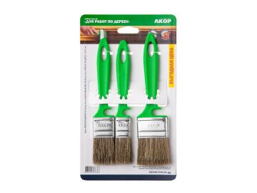 Набор кистей плоских для дерева Акор Эксперт (25, 35, 50 мм), смешанная щетина, 3 шт