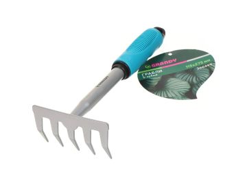Грабли прямые, 5 зуб, сталь, 11,5 см, Grandy, Connect, черенок пластиковый