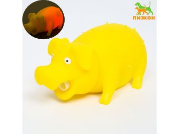 Игрушка пищащая «Весёлая свинья» для собак, хрюкающая, светящаяся, 19 см, жёлтая Пижон