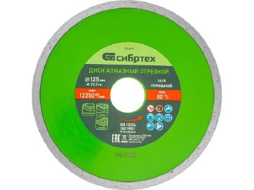 Диск алмазный сплошной 125 мм СИБРТЕХ 22,2 мм для мокрой резки 731617