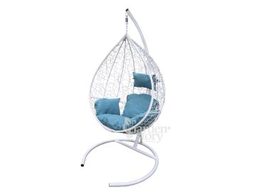 Кресло подвесное Сфера, корзина белая, подушка бирюзовая, арт.CN600-2024