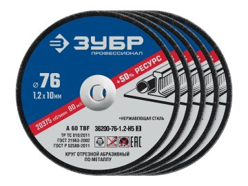 Набор 5 шт: Круги отрезные ″X-2″ по металлу 76х1,2х10 мм, ЗУБР