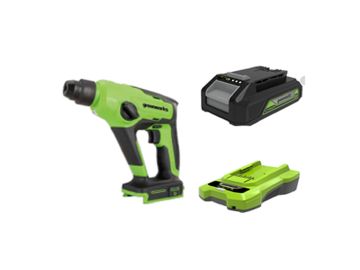 Перфоратор Greenworks GD24SDS1 24V (1,2 Дж) бесщеточный аккумуляторный c 2 Ач АКБ и ЗУ, в сумке