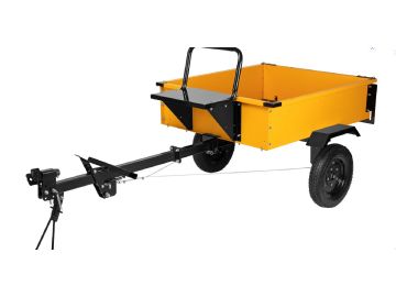 Прицеп Denzel TT-500 59950 с оцинкованным кузовом и регулируемой сцепкой, с колесами размером 4.00-10, в упаковке, имеет общую грузоподъемность 500 кг. Позволяет использовать мотоблок в качестве транспортного средства, а также перевозить различные грузы. Прицеп самосвального типа с функцией опрокидывания удобен для выгрузки. Приспособление пригодится в сельском хозяйстве и коммунальной сфере.