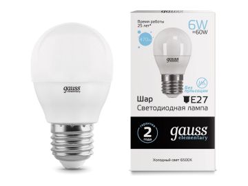 Лампа светодиодная Gauss Elementary E27 6 Вт 6500K Шар