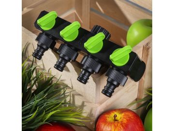 Распределитель для шланга 4-х канальный, с регулировкой подачи воды, быстросъемный, на кран с наружней резьбой 3/4", Grandy, JS-349