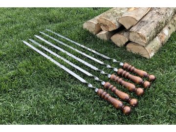 Шампур плоский, 650 х 10 х 2.5 мм, с деревянной лакированной рукояткой, нержавеющая сталь, Camping P