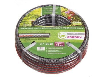 Шланг поливочный, 1/2 , внутренний d15 мм, 18 атм, армированный, 20 м, 3 слоя, Grandy, Ultra, ПВХ, AGL061220-G