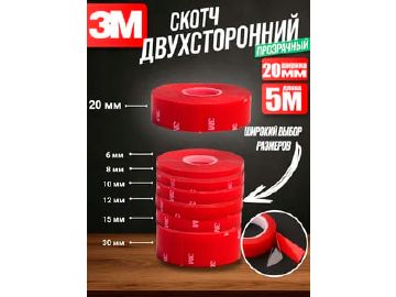 Скотч 3М двусторонний на силиконовой основе 20мм